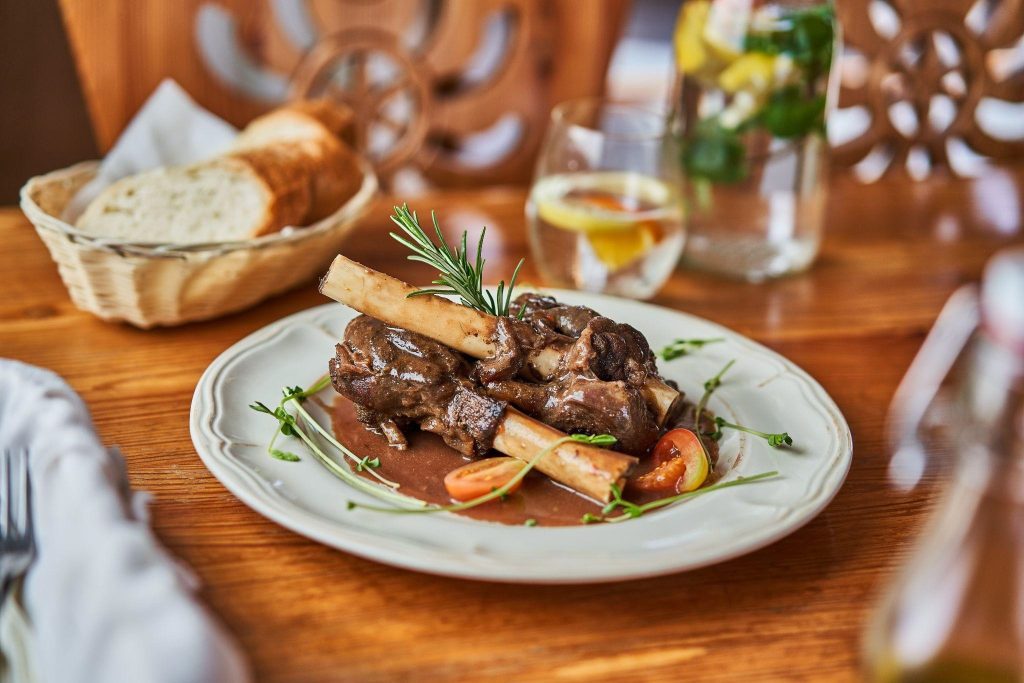 Tradycyjne żeberka podawane z kapustą zasmażaną i ziemniakami opiekanymi