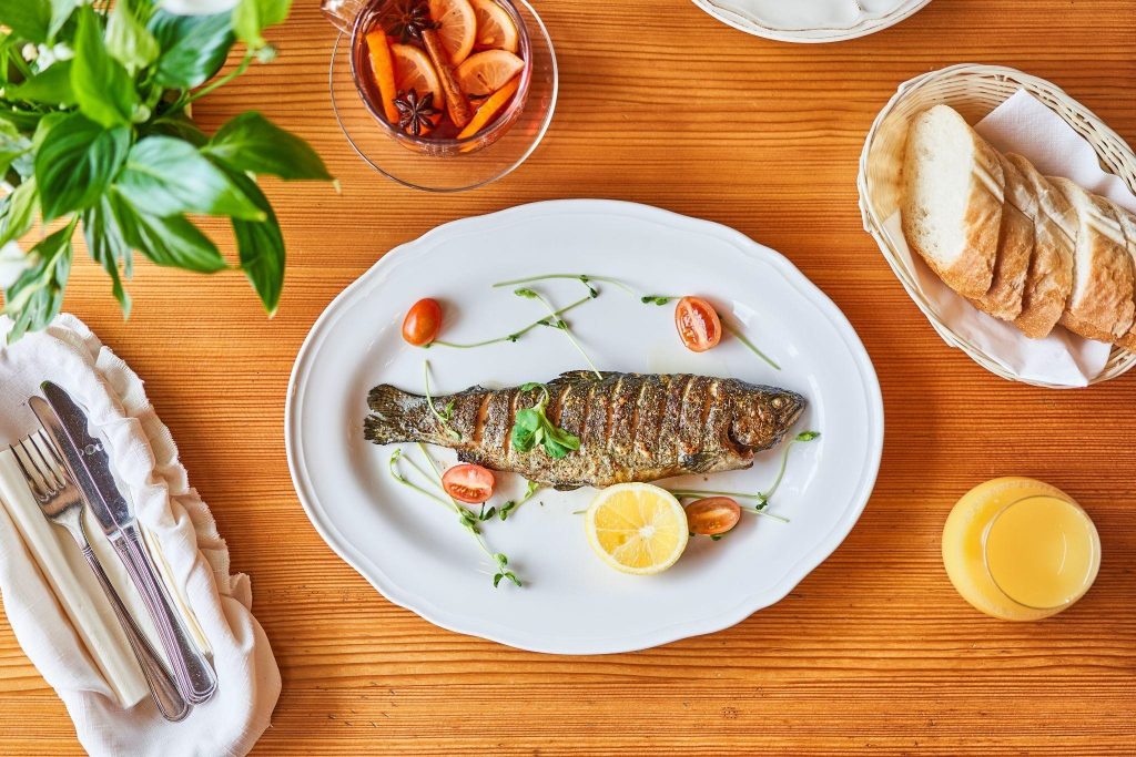 Miruna z pieca z czarną soczewicą i szpinakiem