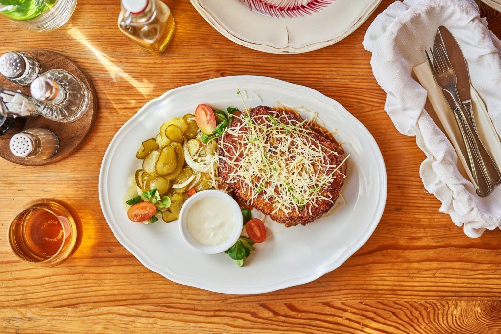 Kotlet schabowy z ziemniakami i kapustą zasmażaną